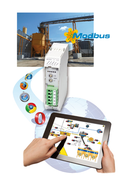 Automatisierte Maschinenanlagen lassen sich über herkömmliche Web-Browser mit netScada-Modbus steuern. Dieser verbindet sich mit dem System über einfachen seriellen Modbus – ein Protokoll, das die meisten installierten Feldgeräte unterstützen. Programmierkenntnisse sind dafür nicht nötig. Per Drag & Drop können vorgefertigte Steuerungs- und Visualisierungselemente auf die Anzeige gezogen werden. Werte von Systemvariablen dynamisieren die Elemente und ermöglichen Werteanzeige, Skalierung, Bewegung und Rotation. Dabei könne eigene Grafiken verwendet werden. Kombiniert mit Standardfunktionen wie Linien, Rechtecken und Kreisen kann ein individuelles Design gestaltet werden. Zur Erweiterung der Anlage um ein flexibles HMI dient netScada-Modus.